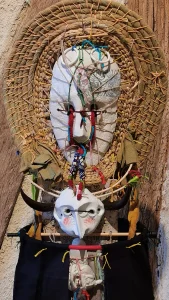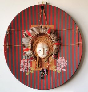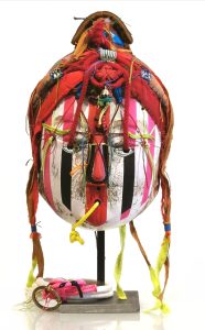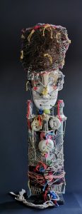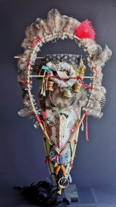 OH TRIBAL Homme taureau chamanHauteur = 40 cm.Bois, fibre, terre, liens. La diseuseHauteur = 45 cm.Papier, bois, terre, joncs. COLLECTION PARTICULIERE Le gardienHauteur = 50 cm.Bois, liens, tissu, objets, fil de fer. COLLECTION PARTICULIERE La précieuseHauteur = 45 cm.Bois, fibres, terre, liens. COLLECTION PARTICULIERE Le clownHauteur = 40 cm.Papier, terre, liens. Masque de fêteHauteur = 40 cm.Papier, terre, liens, fil de cuivre.COLLECTION PARTICULIÈRE Homme oiseau Hauteur = 40 cm.Papier, terre, liens, fil de cuivre. Masque de ConcordeDiamètre 80 cm.Papier, terre, liens, fil de cuivre, métal.COLLECTION PARTICULIÈRE Esprit des moissonsHauteur = 120 cm Papier massif, végetaux, terre, lien, tissu. La japonaiseH = 40 cm Bois, perles, os, tissus, liens. Bouddah revisitéH = 40 cm Bois, tissu, soie, rayures de plage, liens.